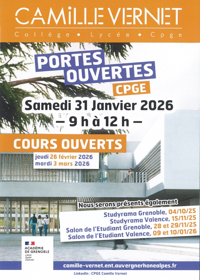 Portes Ouvertes CPGE Lycée Camille VERNET - 31/1/26