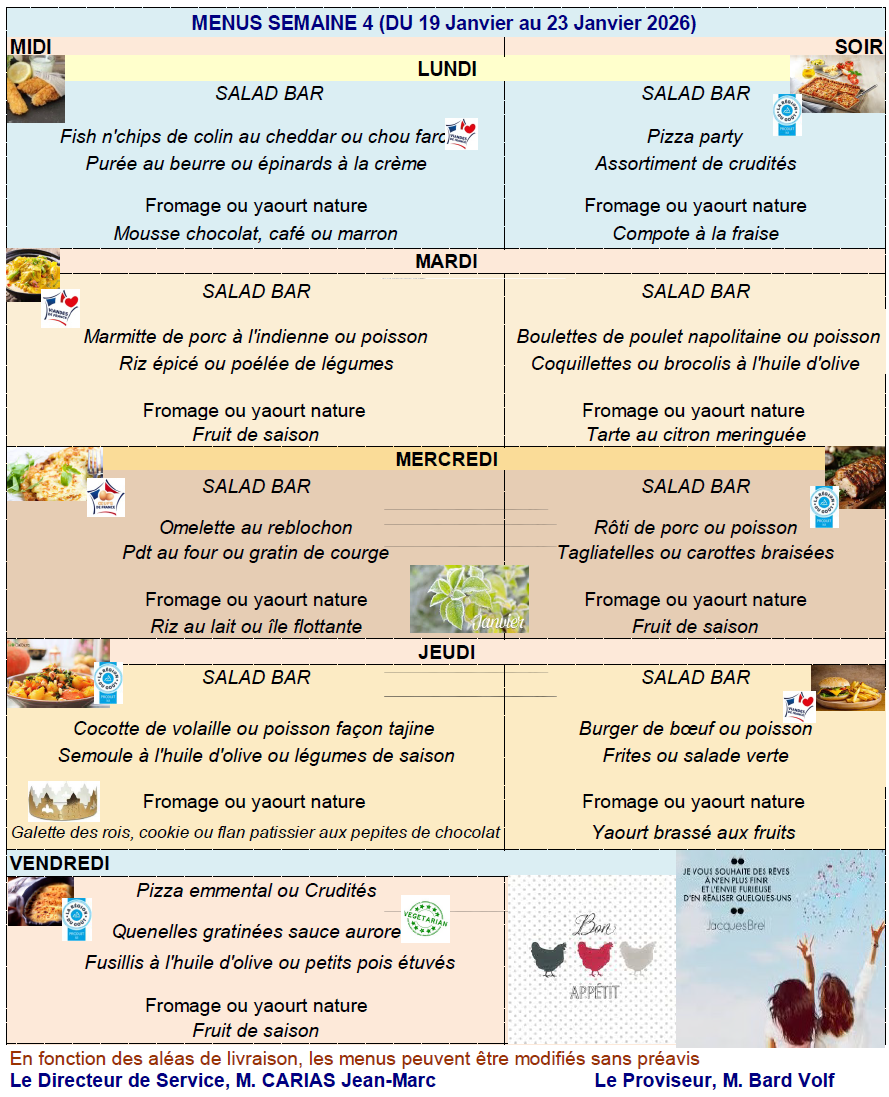 Menus de la cantine